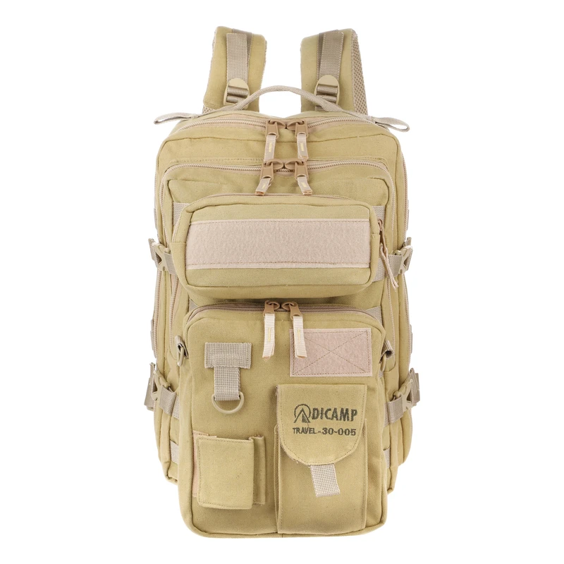 کوله‌پشتی کوهنوردی دیکمپ مدل TRAVEL-30-005 با طراحی خاص، مناسب کوهنوردی، کمپینگ، پیاده‌روی، طبیعت‌گردی و مسافرت است. این کوله‌پشتی با ظرفیت ۳۵ لیتر، فضای کافی برای حمل وسایل الکترونیکی مانند لپ‌تاپ و تبلت، وسایل سفر، موبایل، هندزفری، پاوربانک، غذا، لباس و لوازم شخصی دارد. همچنین می‌توانید کیسه خواب یا پتو را به آن وصل کنید و به راحتی حمل کنید. این مدل شامل یک کیف دوشی و یک کیف کمری است که روی محفظه اصلی نصب شده و قابلیت جدا شدن و استفاده جداگانه دارند. بندهای پشت و کمری نیز قابل جدا شدن هستند. برای راحتی بیشتر، پشت کیف و بندها دارای پدهای تهویه هوا هستند و قفل‌های قابل تنظیم روی قفسه سینه و بند کمری فشار روی شانه و کمر را کاهش می‌دهند. جنس کوله از برزنت مقاوم، ضدآب و قابل شست‌وشو ساخته شده و در بخش‌های مختلف از آستر مرغوب استفاده شده است. دوخت‌ها با کیفیت بالا و مقاومت زیادی در برابر فشار دارند و قفل‌ها طراحی مستحکم و خاصی دارند. این کوله‌پشتی انتخاب مناسبی برای کوهنوردان و طبیعت‌گردان است که به دنبال محصولی با دوام و کارآمد می‌گردند.